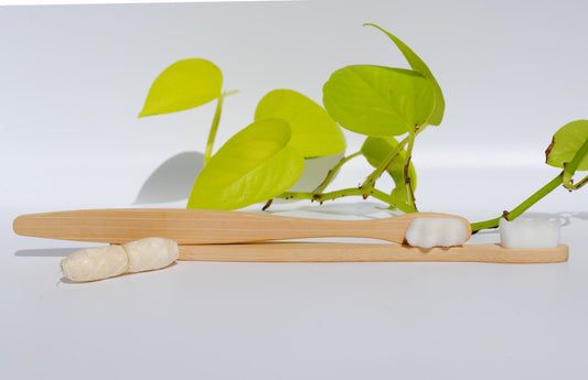 Two Toothbrushes and Refillable Silk Floss Bamboo Case